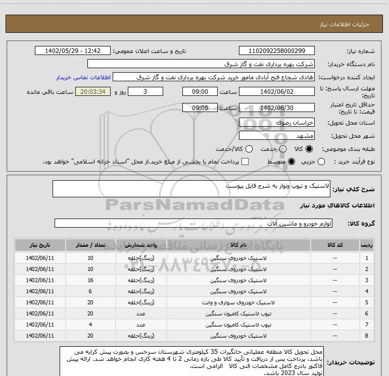 شرح کلی نیاز: لاستیک و تیوپ ونوار به شرح فایل پیوست