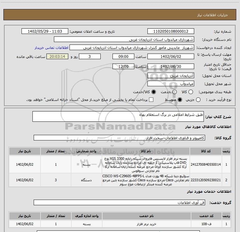 نام دستگاه خریدار:شهرداری میاندواب استان اذربایجان غربی