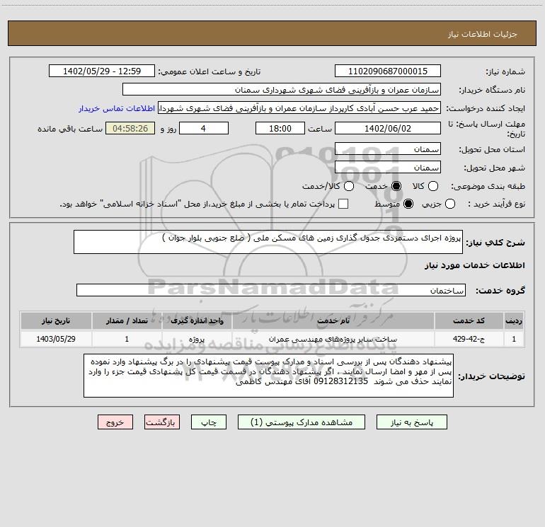 نام دستگاه خریدار:سازمان عمران و بازآفرینی فضای شهری شهرداری سمنان