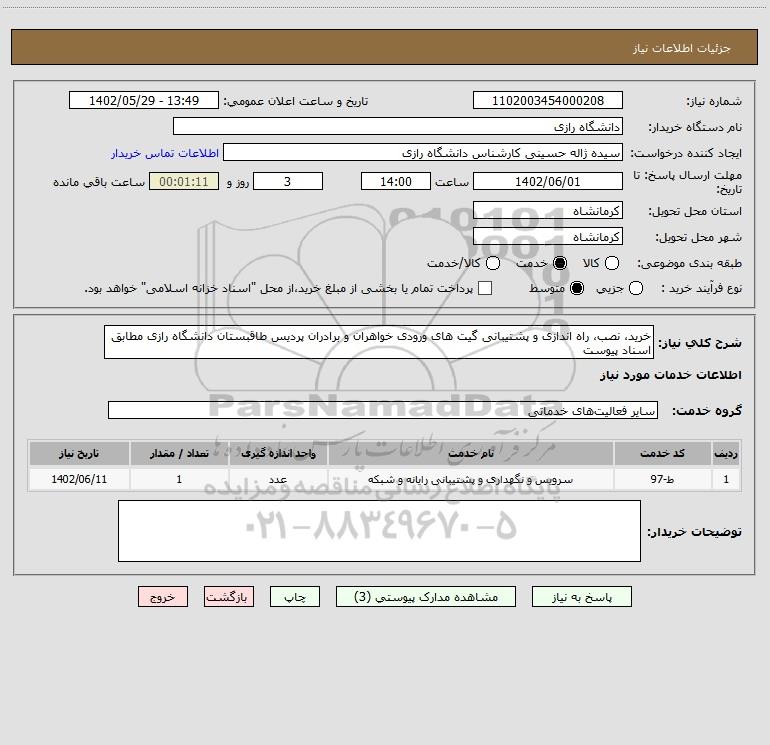 شرح کلی نیاز: خرید، نصب، راه اندازی و پشتیبانی گیت های ورودی خواهران و برادران پردیس طاقبستان دانشگاه رازی مطابق اسناد پیوست