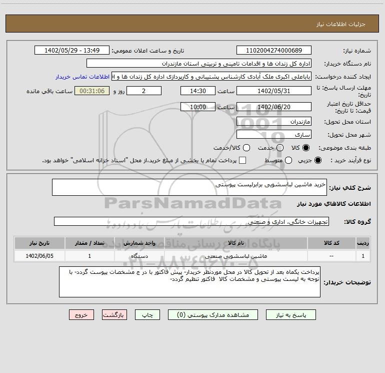 شرح کلی نیاز: خرید ماشین لباسشویی برابرلیست پیوستی