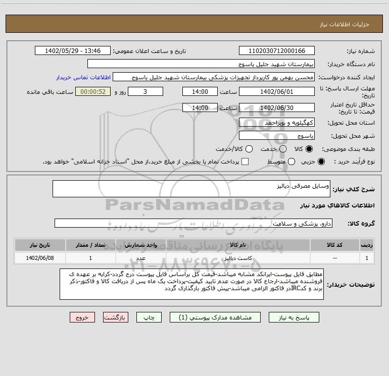 نام دستگاه خریدار:بیمارستان شهید جلیل یاسوج