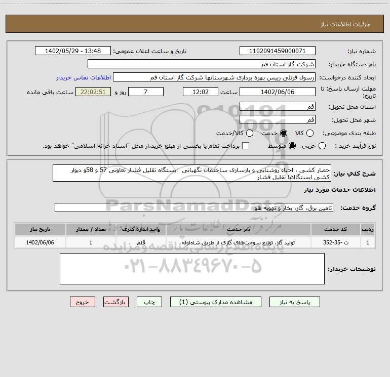 شرح کلی نیاز: حصار کشی ، احیاء روشنایی و بازسازی ساختمان نگهبانی ایستگاه تقلیل فشار تعاونی 57 و 58و دیوار کشی ایستگااها تقلیل فشار