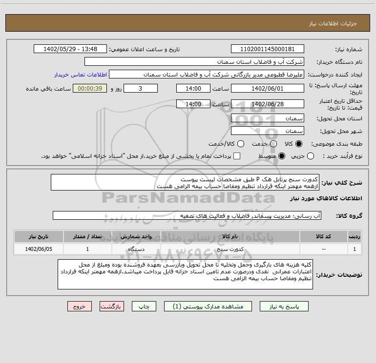 نام دستگاه خریدار:شرکت آب و فاضلاب استان سمنان