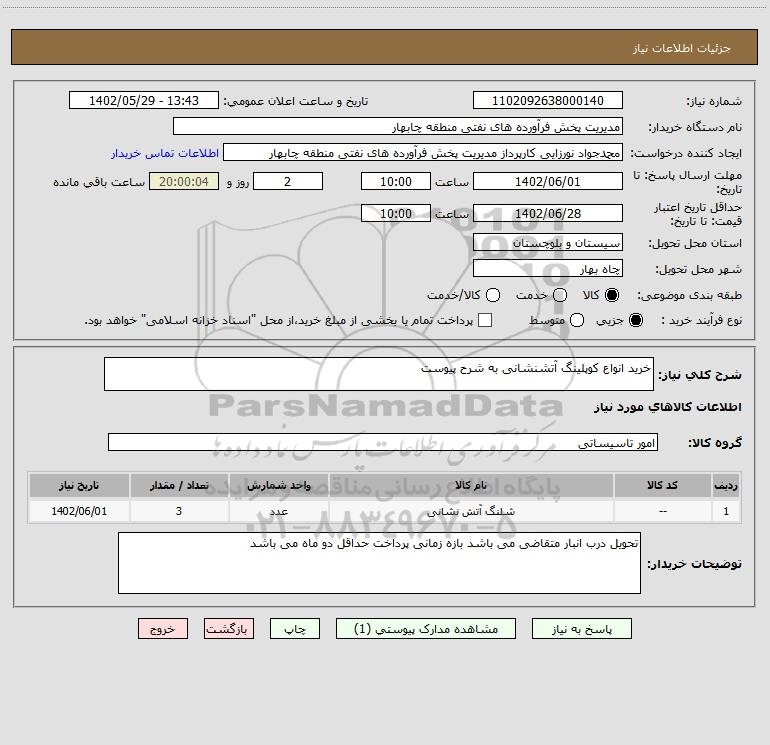شرح کلی نیاز: خرید انواع کوپلینگ آتشنشانی به شرح پیوست