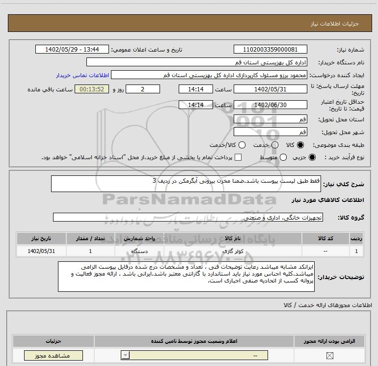 | 1 | -- | کولر گازی | دستگاه | 1 | 1402/05/31 |