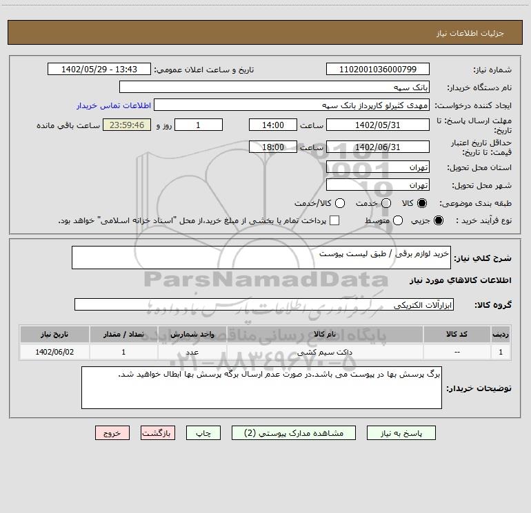 شرح کلی نیاز: خرید لوازم برقی / طبق لیست پیوست