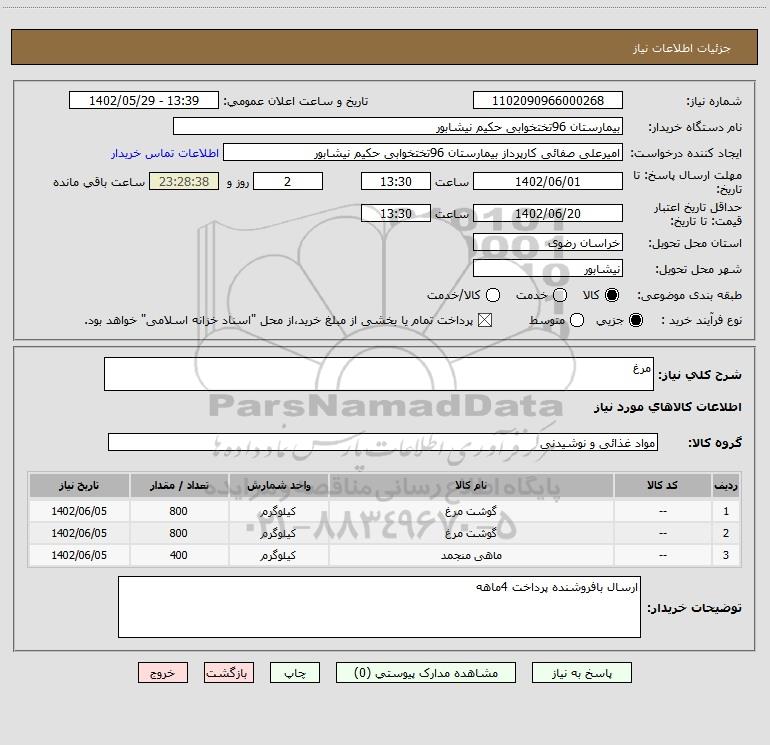 | 2 | -- | گوشت مرغ | کیلوگرم | 800 | 1402/06/05 |