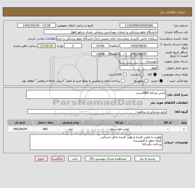 | 1 | -- | لباس خواب بیمار | عدد | 800 | 1402/06/04 |