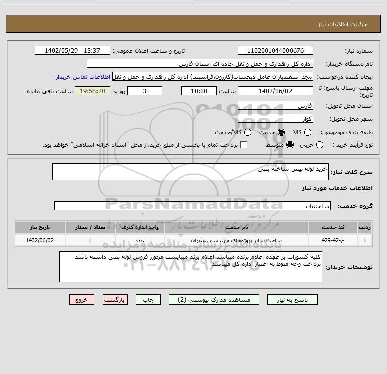 شرح کلی نیاز: خرید لوله پیس شاخته بتنی