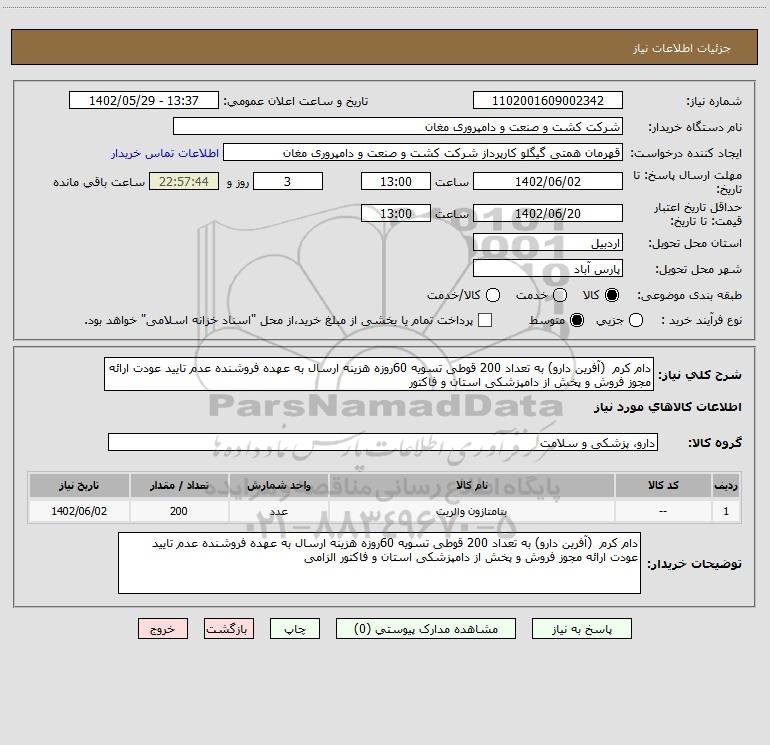 نام دستگاه خریدار:شرکت کشت و صنعت و دامپروری مغان