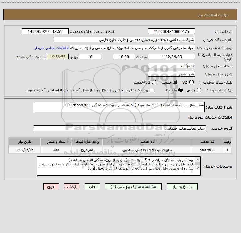 نام دستگاه خریدار:شرکت سهامی منطقه ویژه صنایع معدنی و فلزی خلیج فارس