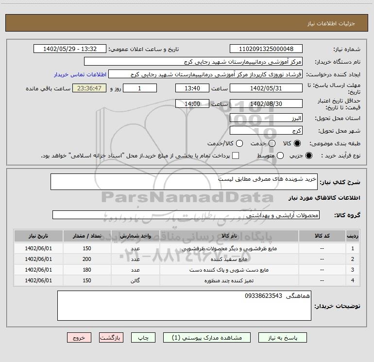 شرح کلی نیاز: خرید شوینده های مصرفی مطابق لیست
