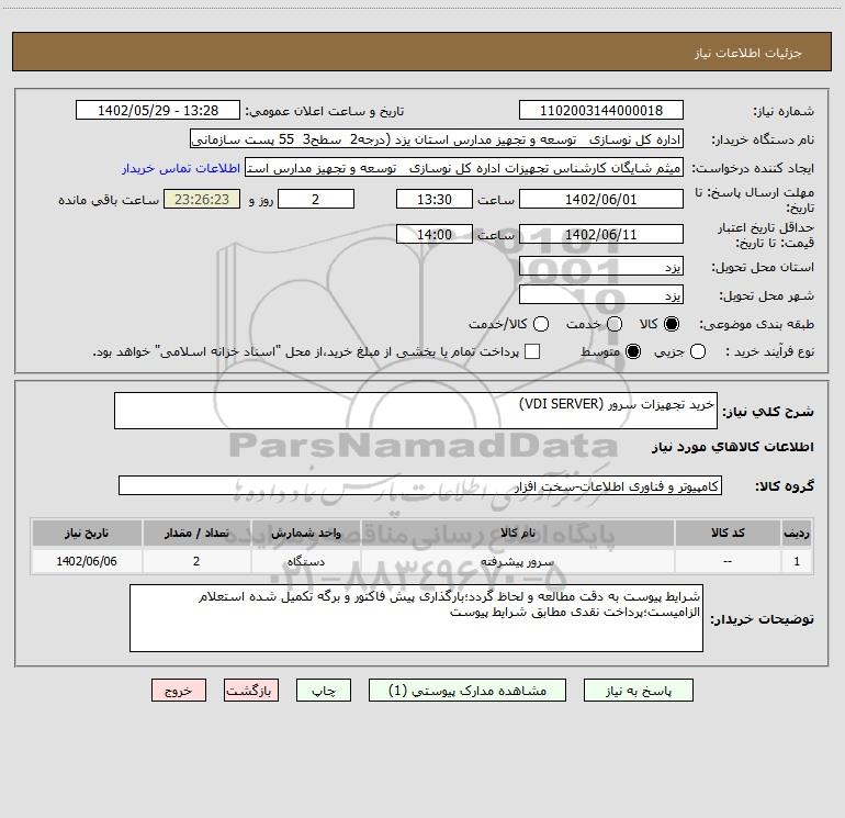 نام دستگاه خریدار:اداره کل نوسازی توسعه و تجهیز مدارس استان یزد (درجه2 سطح3 55 پست سازمانی)