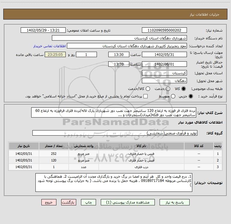 شرح کلی نیاز: نرده فلزی فر فورژه به ارتفاع 120 سانتیمتر جهت نصب دور شهربازی پارک لاله/نرده فلزی فرفورژه به ارتفاع 60 سانتیمتر جهت نصب دور فلکه(میدان)سنجرخان و ...