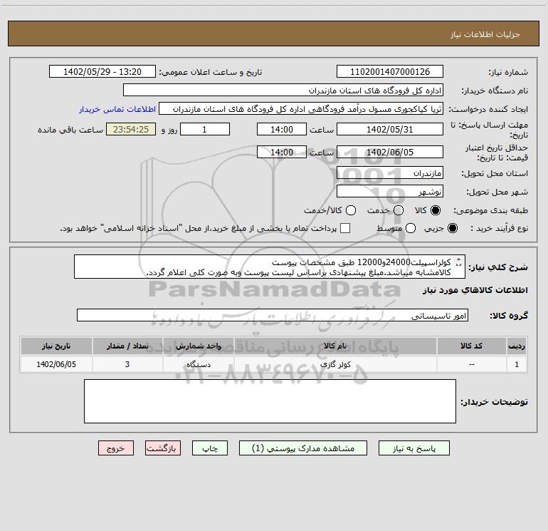 شرح کلی نیاز: کولراسپیلت24000و12000 طبق مشخصات پیوست