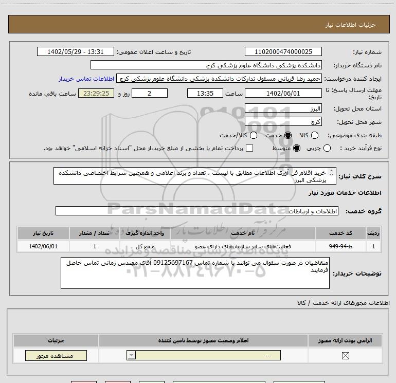 شرح کلی نیاز: خرید اقلام فن آوری اطلاعات مطابق با لیست ، تعداد و برند اعلامی و همچنین شرایط اختصاصی دانشکده پزشکی البرز