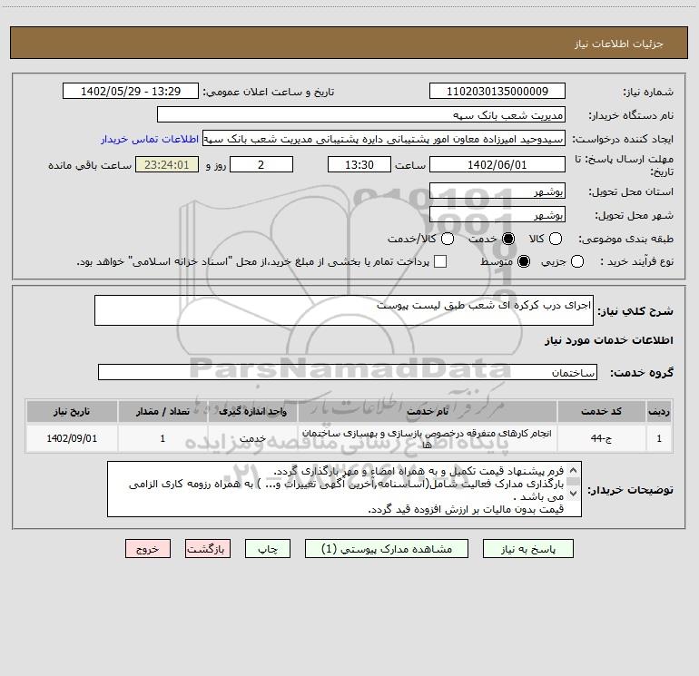 شرح کلی نیاز: اجرای درب کرکره ای شعب طبق لیست پیوست