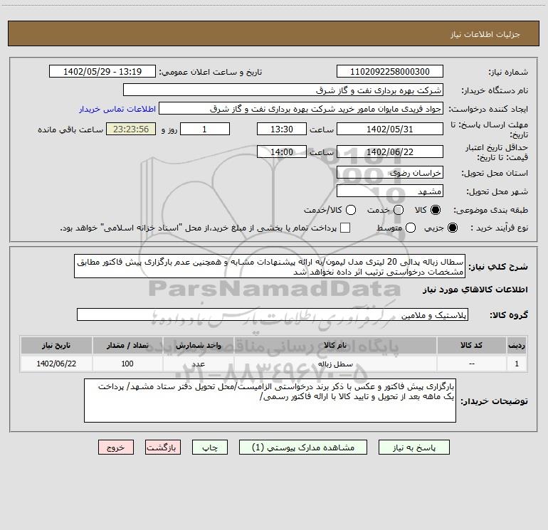 نام دستگاه خریدار:شرکت بهره برداری نفت و گاز شرق