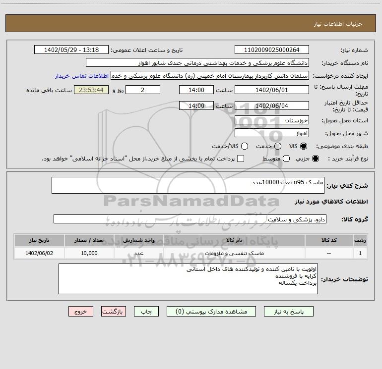 شرح کلی نیاز: ماسک n95 تعداد10000عدد