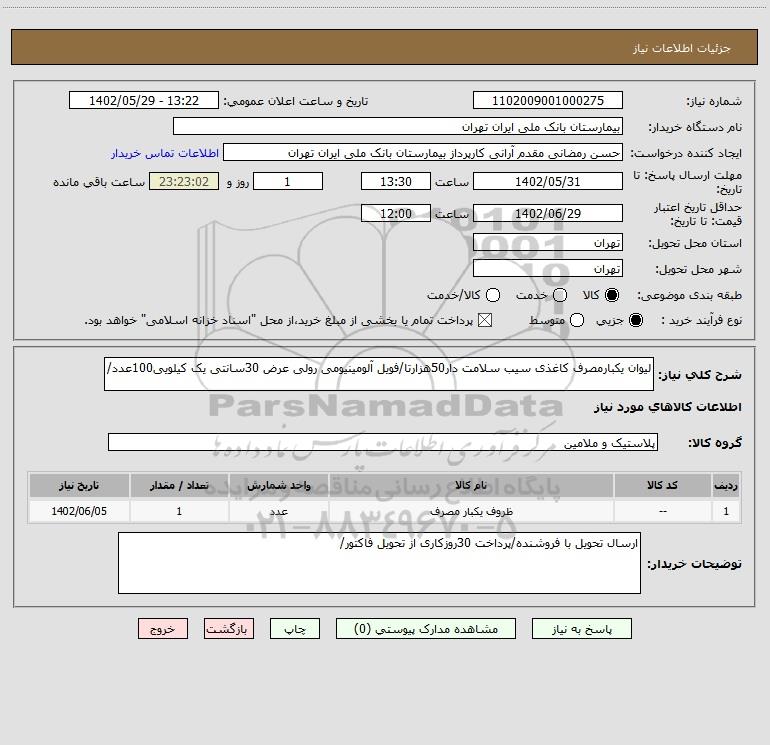 نام دستگاه خریدار:بیمارستان بانک ملی ایران تهران