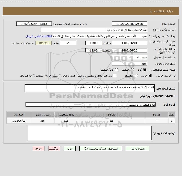 شرح کلی نیاز: قند-چای-شکر-شرح و مقدار بر اساس تصویر پیوست ارسال شود.