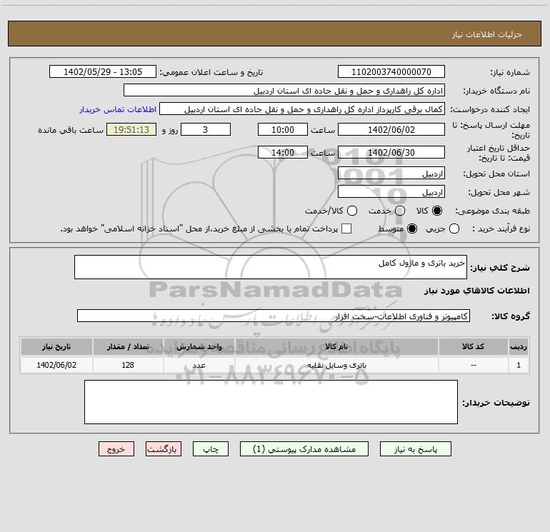 شرح کلی نیاز: خرید باتری و ماژول کامل
