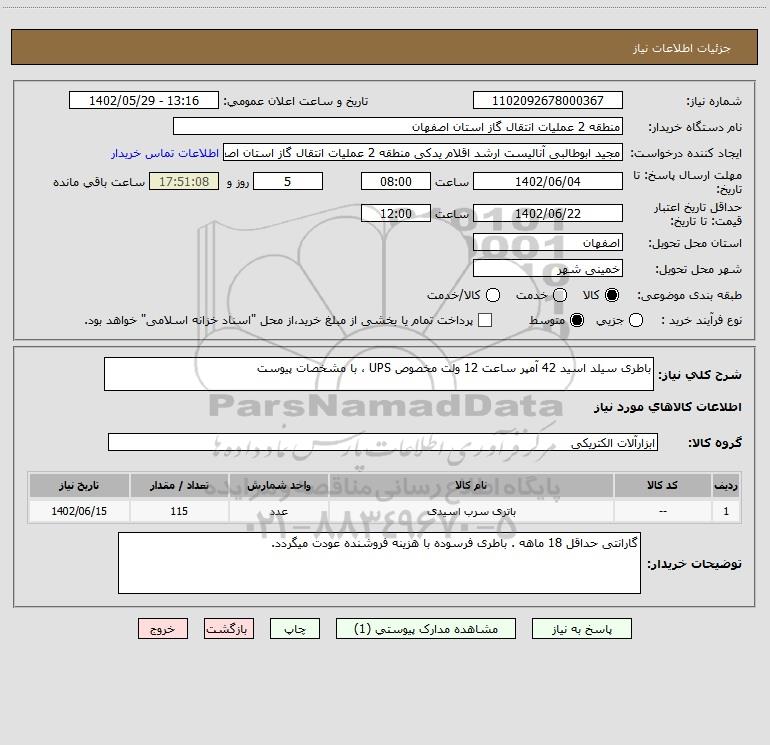 نام دستگاه خریدار:منطقه 2 عملیات انتقال گاز استان اصفهان