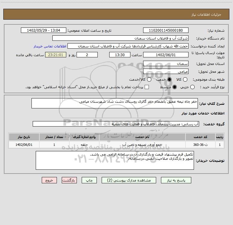 استعلام حفر چاه نیمه عمیق بانضمام حفر گالری روستای دشت شاد شهرستان میامی, استعلام حفر چاه نیمه عمیق بانضمام حفر گالری روستای دشت شاد شهرستان میامی