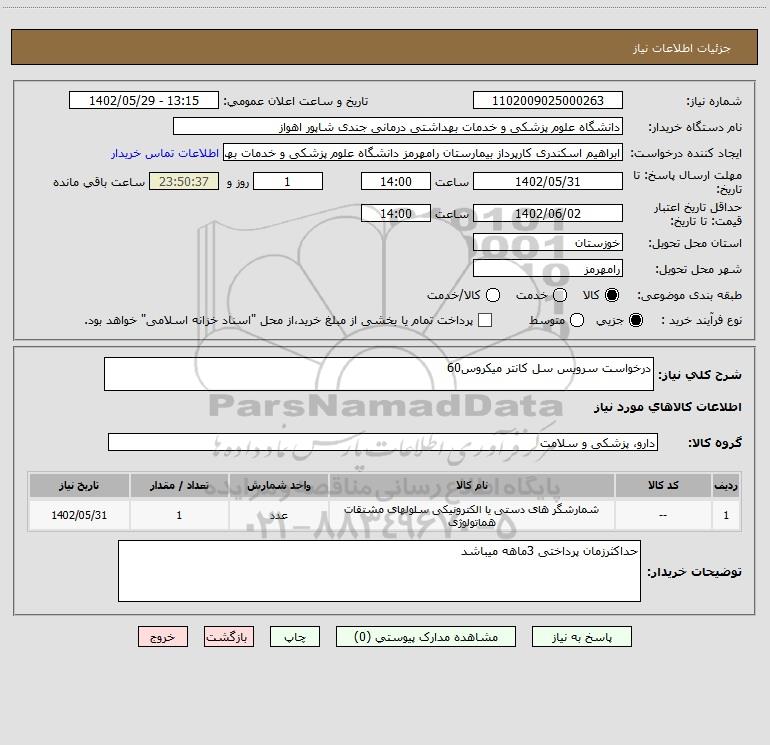 شرح کلی نیاز: درخواست سرویس سل کانتر میکروس60