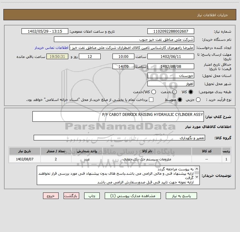 شرح کلی نیاز: P/F CABOT DERRICK RAISING HYDRAULIC CYLINDER ASSY