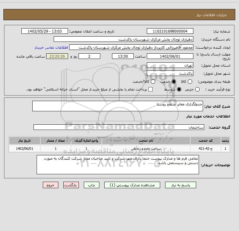شرح کلی نیاز: جدولگذاری معابر سطح روستا