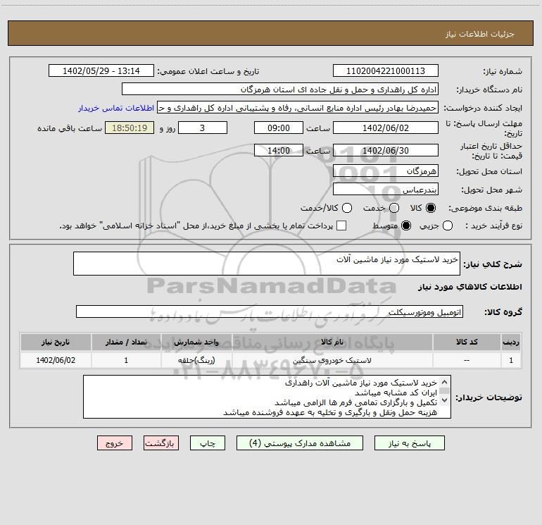 نام دستگاه خریدار:اداره کل راهداری و حمل و نقل جاده ای استان هرمزگان