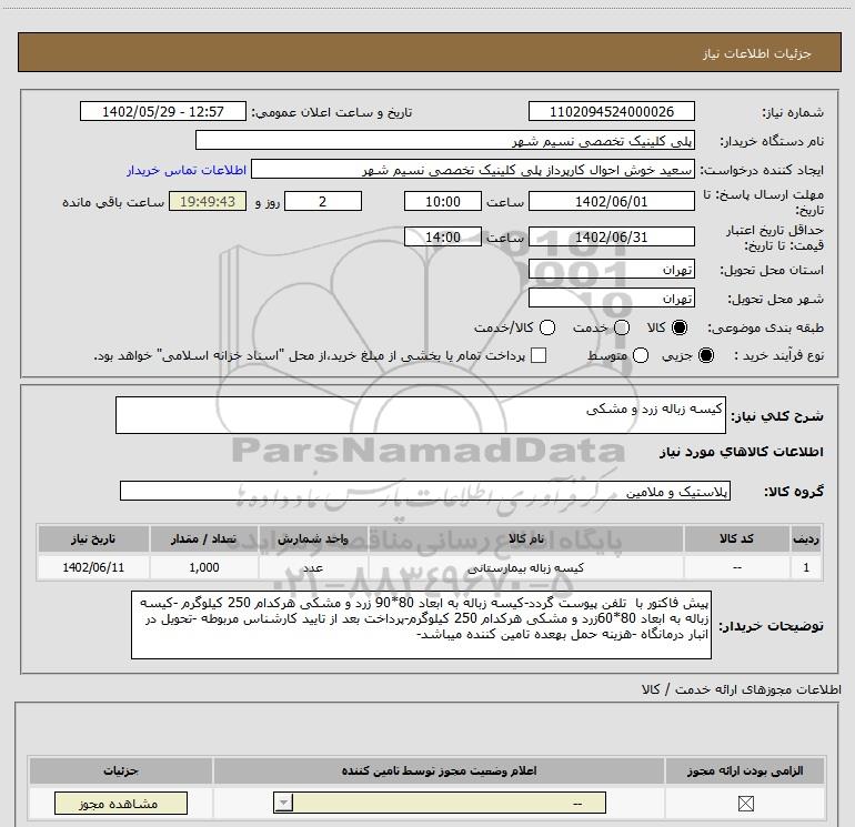 شرح کلی نیاز: کیسه زباله زرد و مشکی