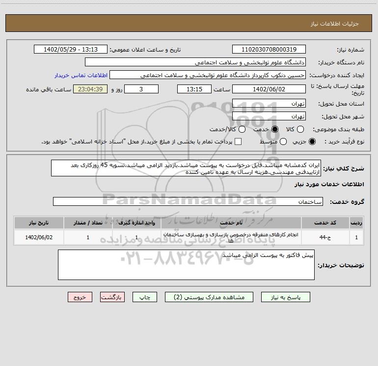 نام دستگاه خریدار:دانشگاه علوم توانبخشی و سلامت اجتماعی