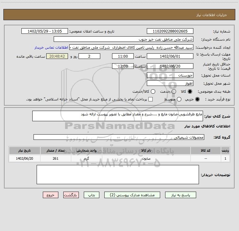 نام دستگاه خریدار:شرکت ملی مناطق نفت خیز جنوب
