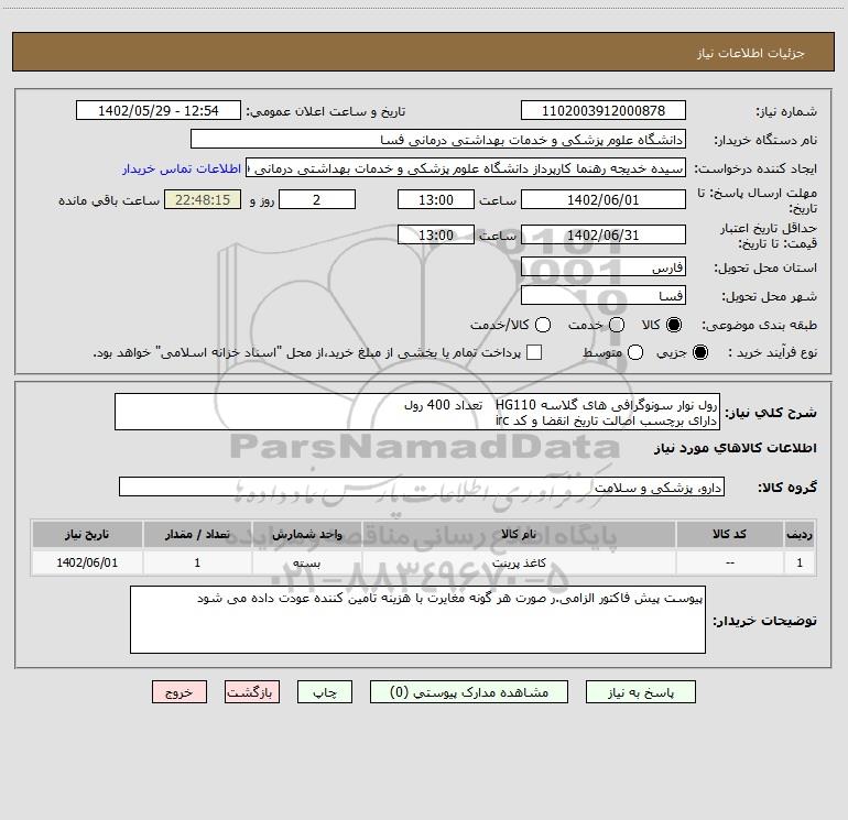 استعلام رول نوار سونوگرافی های گلاسه HG110 تعداد 400 رول دارای برچسب اصالت تاریخ انقضا و کد irc, استعلام رول نوار سونوگرافی های گلاسه HG110 تعداد 400 رول دارای برچسب اصالت تاریخ انقضا و کد irc