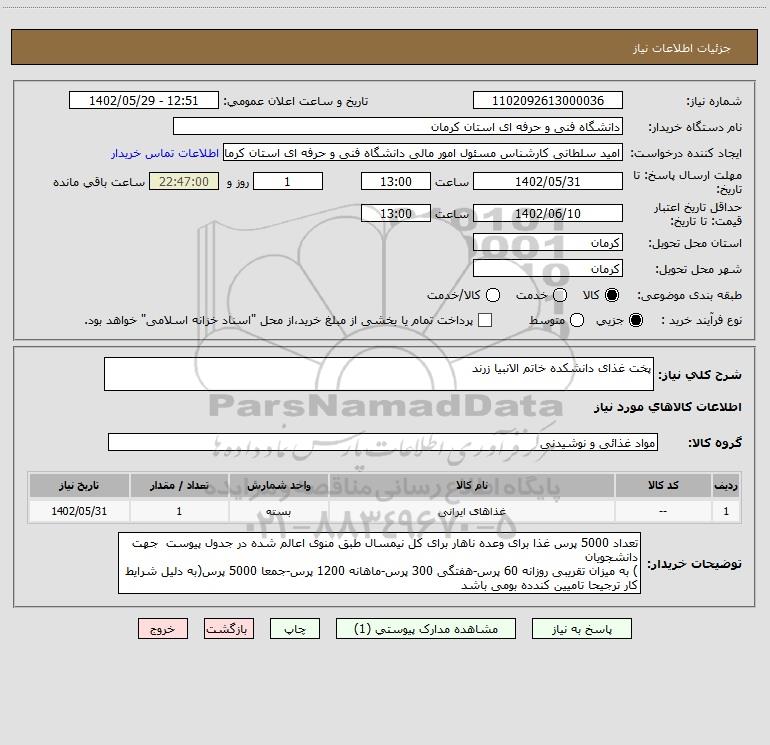 استعلام پخت غذای دانشکده خاتم الانبیا زرند, استعلام پخت غذای دانشکده خاتم الانبیا زرند