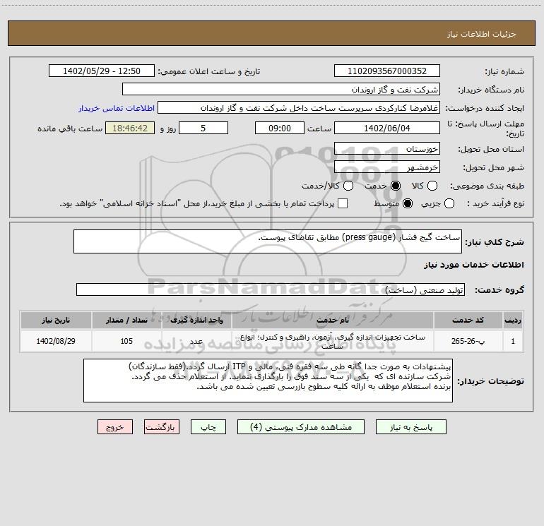 شرح کلی نیاز: ساخت گیج فشار (press gauge) مطابق تقاضای پیوست.