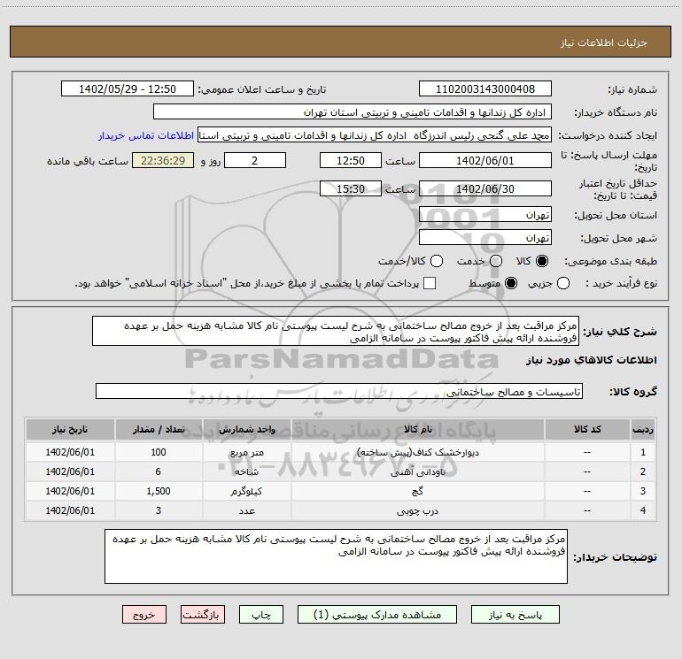 نام دستگاه خریدار: اداره کل زندانها و اقدامات تامینی و تربیتی استان تهران