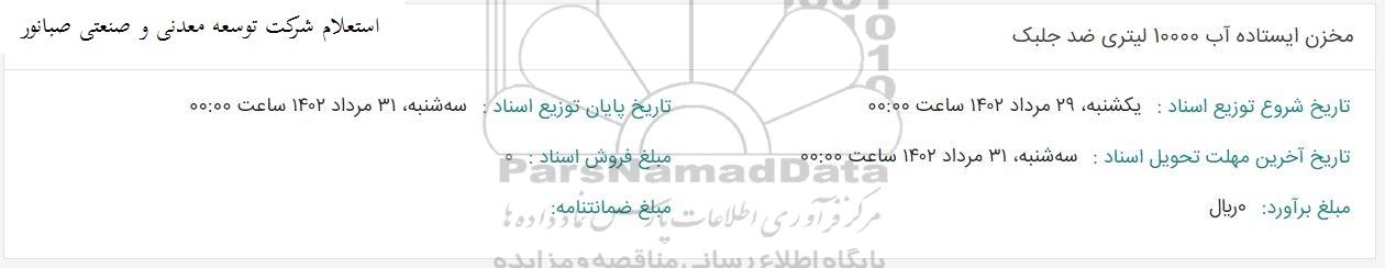 استعلام شرکت توسعه معدنی و صنعتی صبانور