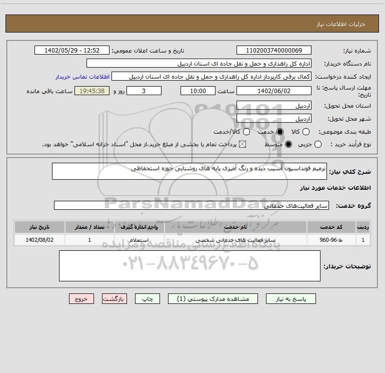 نام دستگاه خریدار:اداره کل راهداری و حمل و نقل جاده ای استان اردبیل