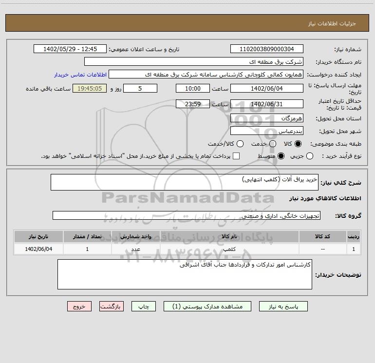 نام دستگاه خریدار:شرکت برق منطقه ای