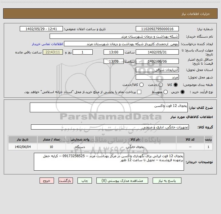 نام دستگاه خریدار:شبکه بهداشت و درمان شهرستان مرند
