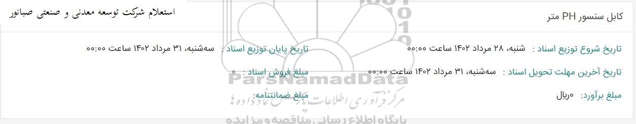 استعلام شرکت توسعه معدنی و صنعتی صبانور