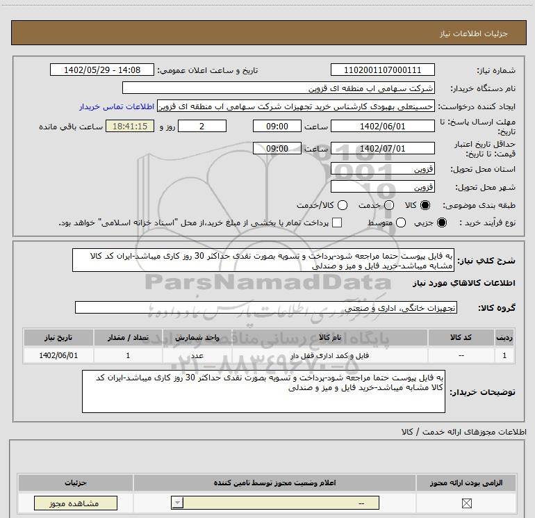 استعلام به فایل پیوست حتما مراجعه شود-پرداخت و تسویه بصورت نقدی حداکثر 30 روز کاری میباشد-ایران کد کالا مشابه میباشد-خرید فایل و میز و صندلی, استعلام به فایل پیوست حتما مراجعه شود-پرداخت و تسویه بصورت نقدی حداکثر 30 روز کاری میباشد-ایران کد کالا مشابه میباشد-خرید فایل و میز و صندلی