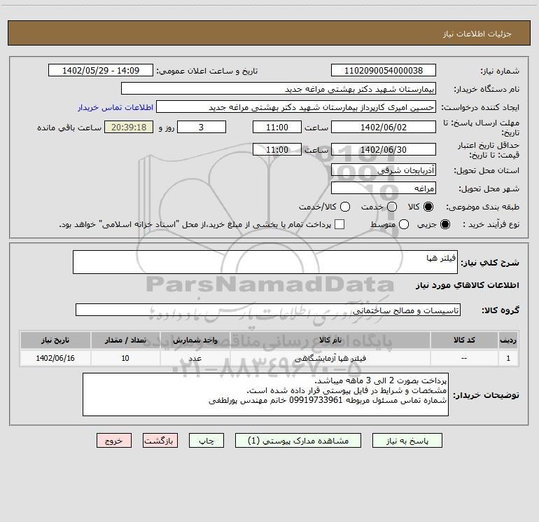 نام دستگاه خریدار:بیمارستان شهید دکتر بهشتی مراغه جدید