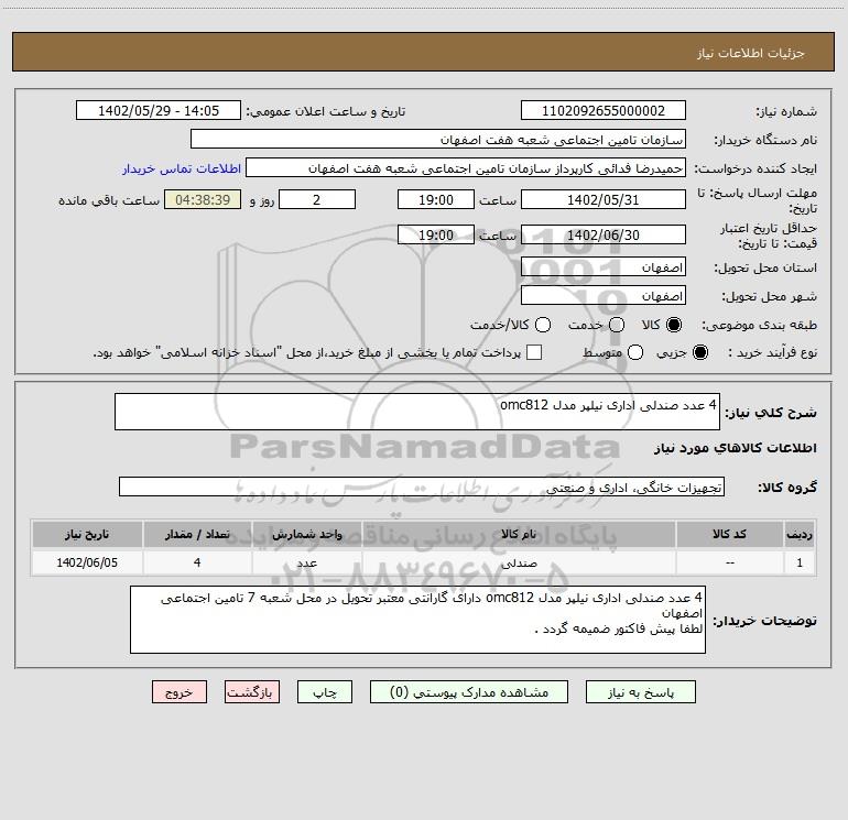 شرح کلی نیاز: 4 عدد صندلی اداری نیلپر مدل omc812
