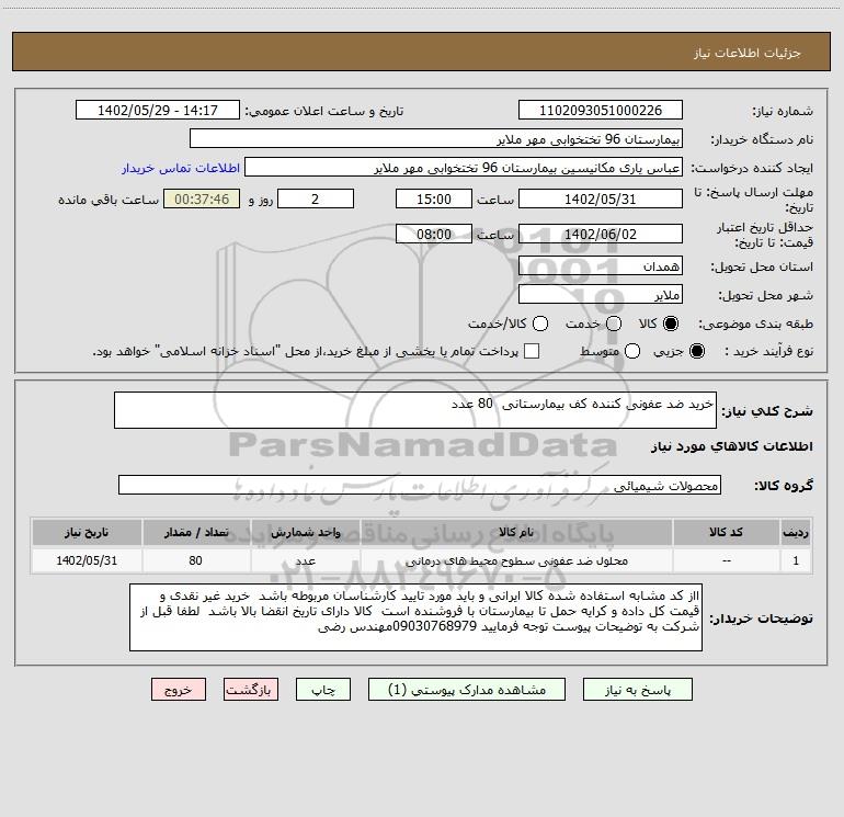 شرح کلی نیاز: خرید ضد عفونی کننده کف بیمارستانی 80 عدد