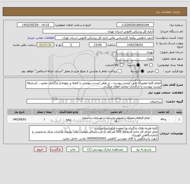 نام دستگاه خریدار:اداره کل پزشکی قانونی استان تهران